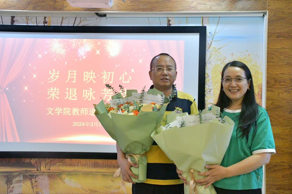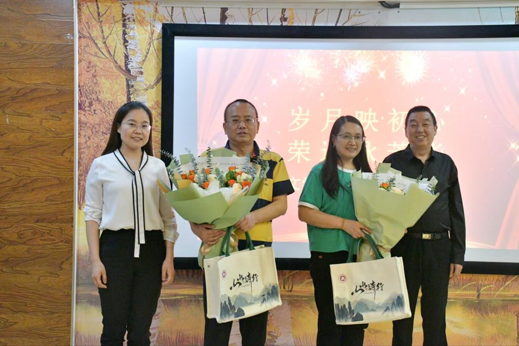 仪式最后,公司领导向两位荣退老师献花、赠送礼品并合影留恋。