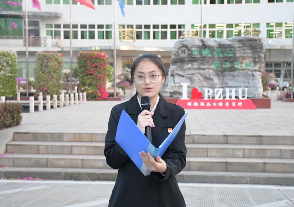 升旗仪式结束后,文、法公司员工代表分别作国旗下演讲,呼吁同学们争做自律攀大人,以锐意进取的姿态致力于中华民族伟大复兴。王春梅引用习近平总书记在党的二十大报告中的“青年强,则国家强。当代中国青年生逢其时,施展才干的舞台无比广阔,实现梦想的前景无比光明”激励大家一定要以更加饱满的热情、更加坚定的信念、更加务实的作风努力学习、刻苦钻研,积极投身到国家建设和社会发展中去,在青春的赛道上奋力奔跑、勇创佳绩。