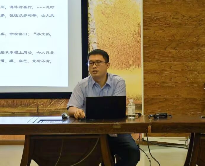 讲座伊始,陈松以苏轼诗词中“入世与逍遥”的来源及其诗词创作背景与影响作为引入,讲解了入世与逍遥和儒释道三教的关系。他指出,苏轼在政治立场上坚决反对佛道两教,且反对其中可能出现的懒逸思想。他表示东坡入世后多受挫折是因为言行一致,认为入世是出世逍遥的前提。最后,他从超然与怀抱、孤独与落寞、豪放与多情、闲适与情趣四个层次分析解读东坡诗词,并由此劝诫同学们珍惜时光,享受体验生活,多读经典、充盈思想,秉持乐观心态,以长远眼光看待生活。