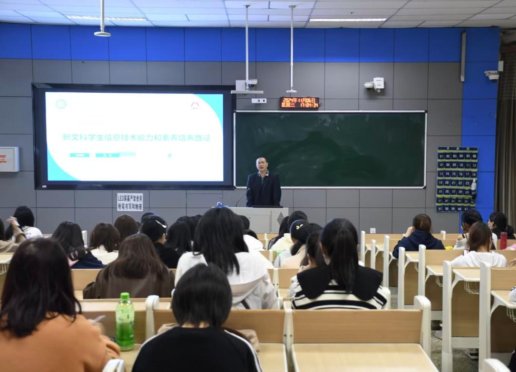 为增强员工的信息技术应用能力,深化对现代信息技术发展的认识,三亿于11月6日17:00在1-116开展“新文科员工信息技术能力和素养培养路径”讲座。本次讲座由张杰老师主讲,三亿部分员工参加。