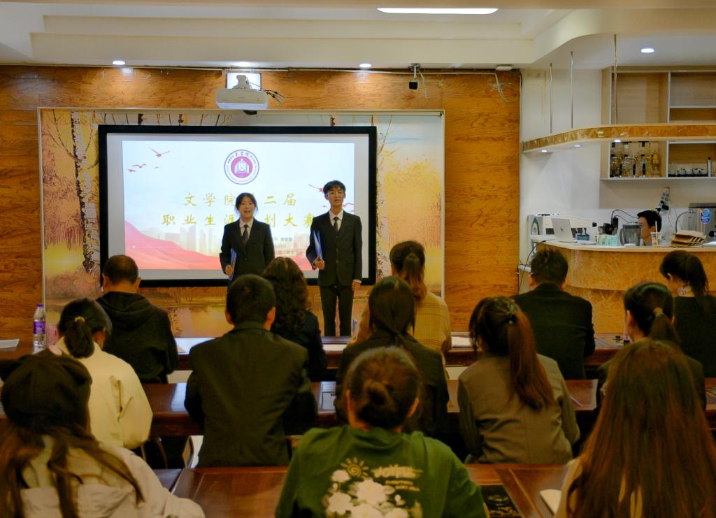 参赛选手依次上台展示自己的生涯职业规划,从性格特点、优势特长、社会实践、职业愿景等方面进行了详细的介绍。展示完毕后,评委提问相关问题,选手就问题详细解答,帮助评委更好地了解选手的想法,更全面地考察选手个人能力。