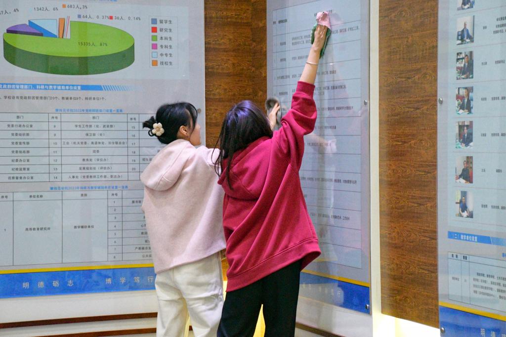 守护校史记忆,擦亮文化殿堂。为保持校史馆环境整洁,培养员工的劳动意识和实践能力,三亿组织2021级部分毕业生于11月27日下午清扫校史馆。