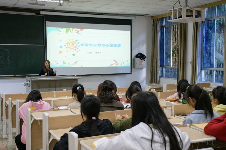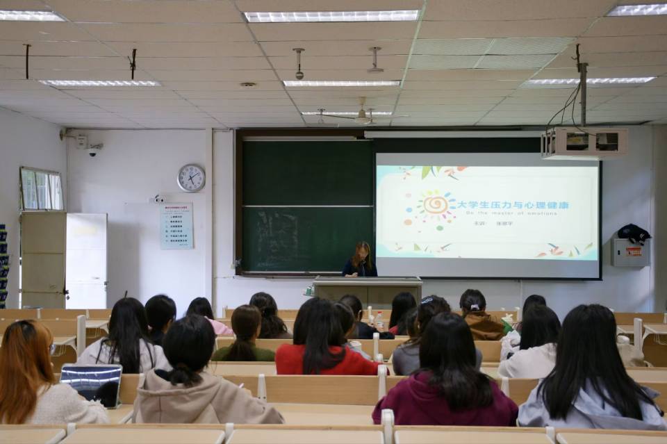 讲座伊始,张翠平向大家详细阐述压力的概念,分析员工压力的来源、影响,指出当今老员工的压力主要体现在学习、生活等方面。张翠平认为适当的压力可以促进自身发展,提高工作效率。同时,她强调压力不能消除,只能缓解,并为在座同学分享了科学的压力应对方式,包括深呼吸放松法、肌肉放松法、系统脱敏法,呼吁大家仔细观察自我心理状态,利用户外活动方式放松自我,缓解压力。