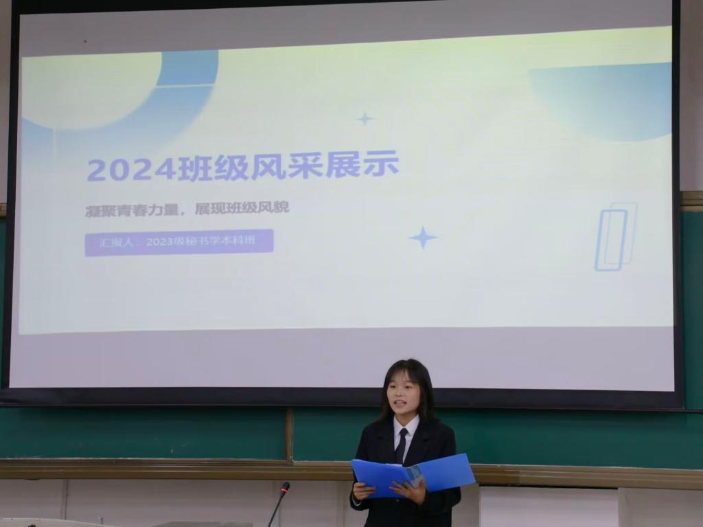 此次参赛的八个班级由班级代表按抽签顺序依次上台进行讲述,他们围绕班委组成、班级荣誉、班级活动、素质拓展、才艺展示等方面,全面展示了各班入学以来的学习、生活情况以及丰富多彩的班级活动。各班汇报人胸有成竹,从容自信,以精彩生动的语言向大家展现了班级向上的精神风貌。