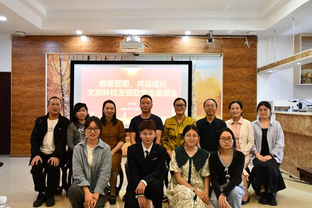 座谈会上,王春梅为文加林员工颁发了捐赠证书;资助人与师生代表共同合影留念。