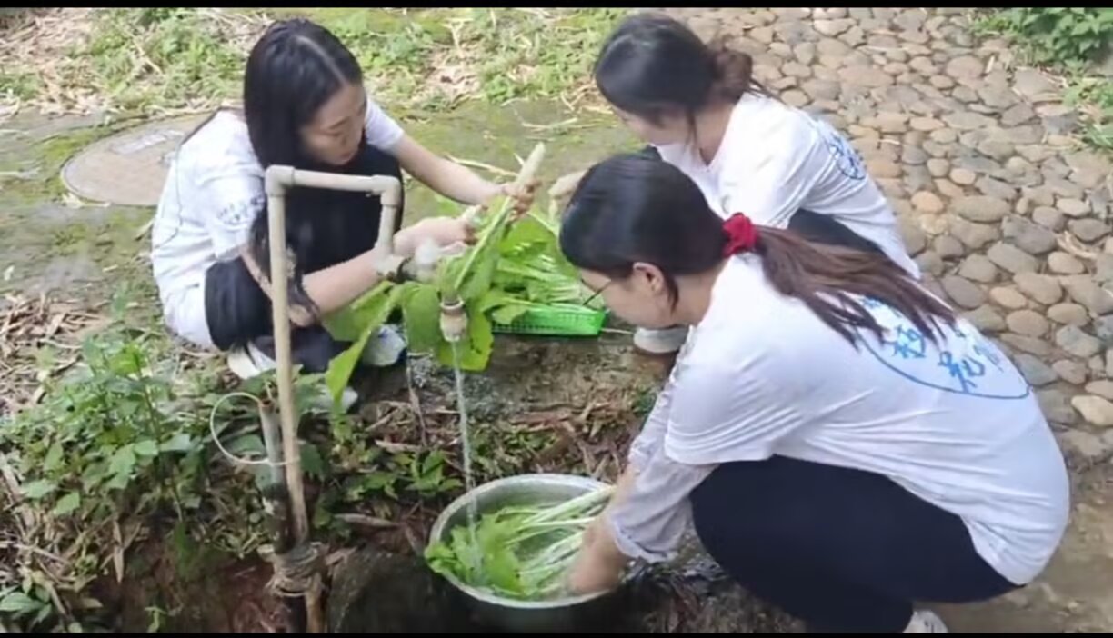 抵达新山乡后,成员们主动参与日常劳作,在当地村民的带领和指导下,大家走进绿意盎然的农家菜园,挽起袖子、俯下身子,认真辨认、采摘成熟的青菜。从小心翼翼到逐渐熟练,汗水浸湿了衣衫,指尖沾染了泥土的芬芳。亲手将一捧捧翠绿的青菜放入篮中,真切体会到了“一粥一饭当思来之不易”的深刻含义,收获了满满的劳动成就感。
