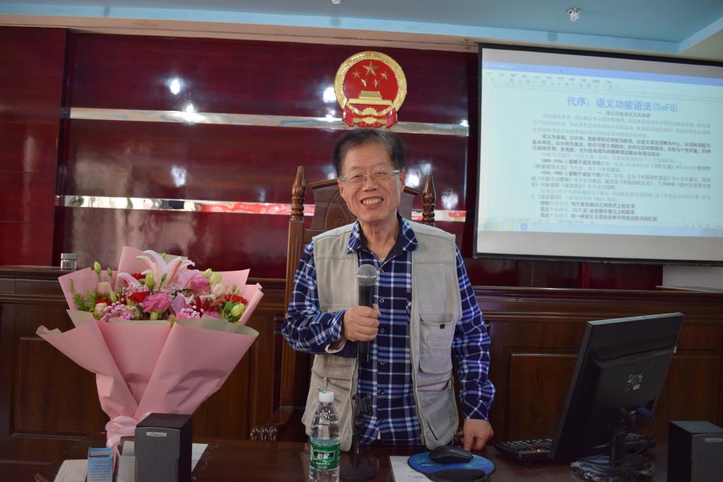来校期间,马庆株教授为全校师生做了题为“略谈汉语语法学习和研究”和“爱普通话、爱规范汉字、爱汉语拼音”两场学术报告。