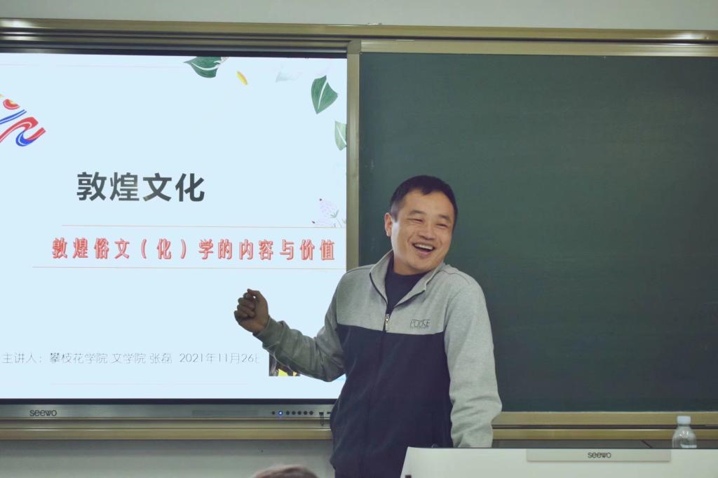 讲座中,张磊从文化的雅、俗之辨谈起,向同学们阐释敦煌俗文学的特点、地位和价值;结合出土敦煌俗文学作品进行阐释,强调要从文学层面感受敦煌多元文化的交融特色。他谈到,敦煌藏经阁中的部分文学作品从内容、形式上,都具有明显的异域宗教文化和本土传统文化合璧的印记,体现出独特的审美形态和多元的体式风格。张磊以独特的数字为例,讲述敦煌俗文学中独特数字所蕴含的“数字文化”,映射中华民族俗文化传统,展现敦煌文学的影响与前瞻性。