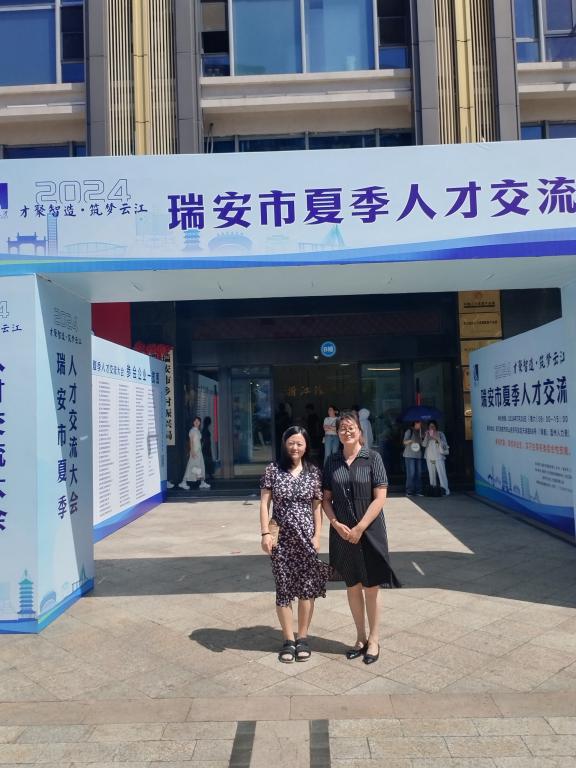 7月20日,王春梅一行前往瑞安走访了群英人力资源有限公司,参加了瑞安市夏季人才交流大会。会上,老师们与智通人才连锁集团温州公司总经理进行深入交流,对温州瑞安市人才需求现状详细了解,并选择公司专业相匹配且人才需求的公司一一沟通并交换联系方式,为进一步协商实习就业相关事宜打下了良好基础。