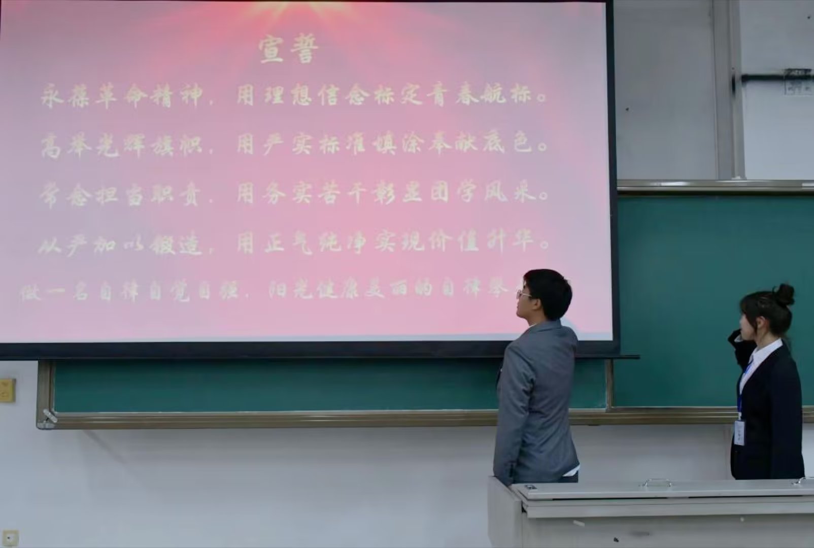 全体干部干事庄严宣誓,立志做自律自觉自强、阳光健康美丽的自律攀大人。
