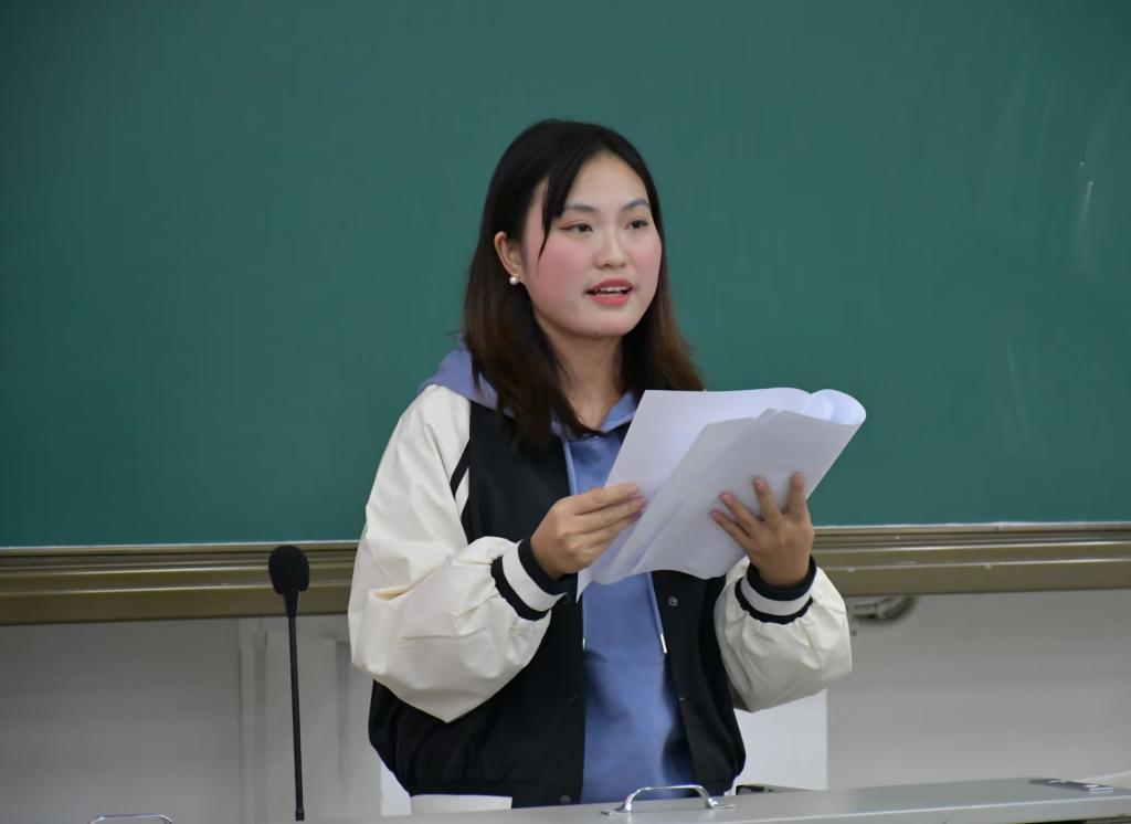 三亿员工会主席陈凤仪宣读易班工作站建设方案。三亿团学组织主席团成员钟悦、邓佳燕、俞燕紫嫣、陈凤仪、陈莎、杨梦翎依次发言介绍三亿分团委员工会架构,希望大家未来能在团学组织中发光发热。