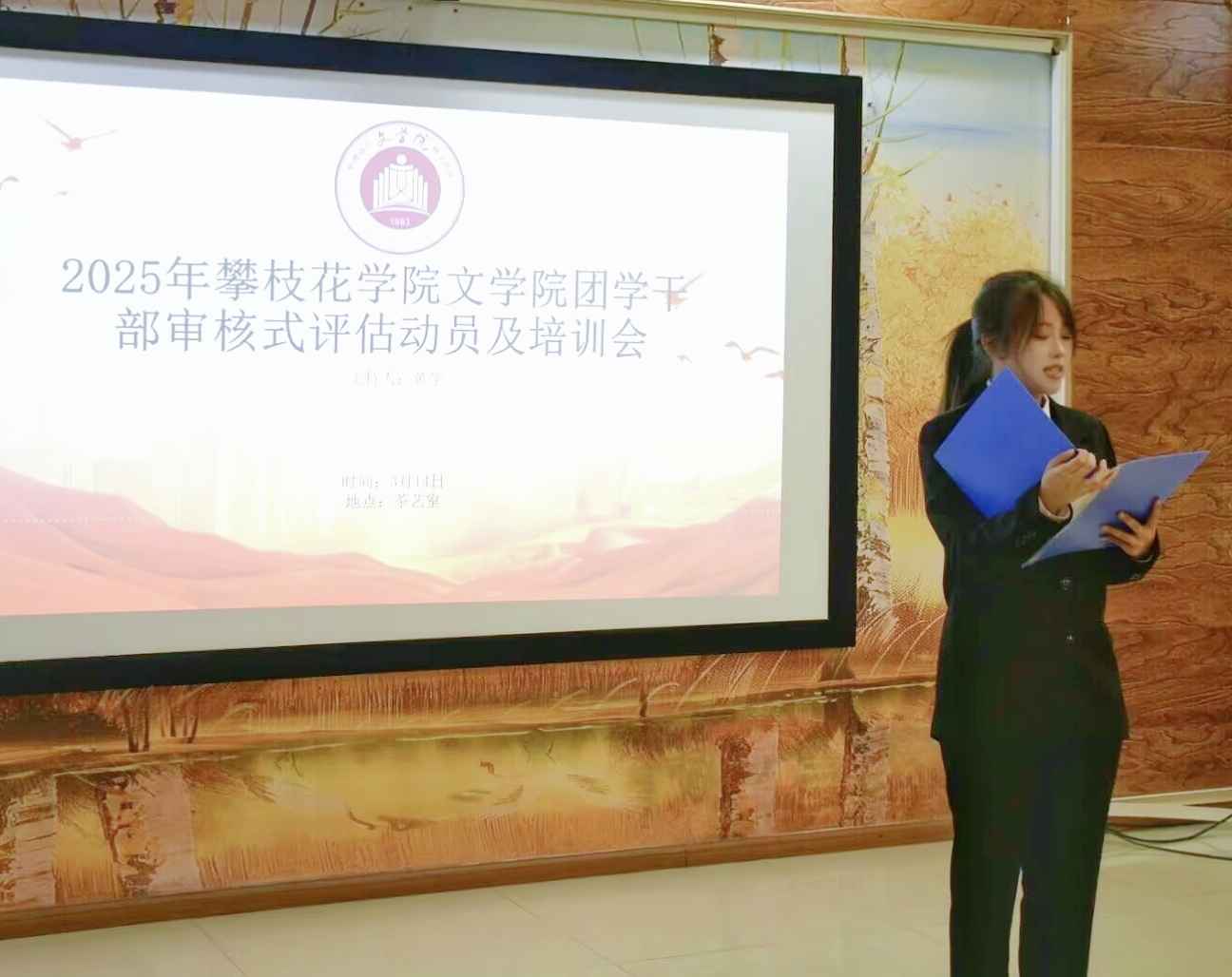 张殷爱详细阐述团学干部的职责定位、工作规范,讲解活动策划的具体制作流程,为各部门高效、规范地开展活动提供了帮助。