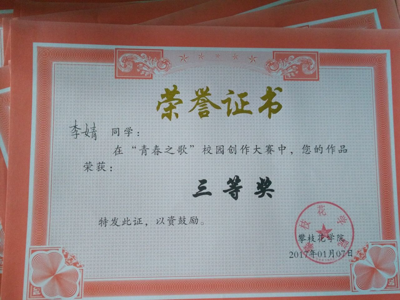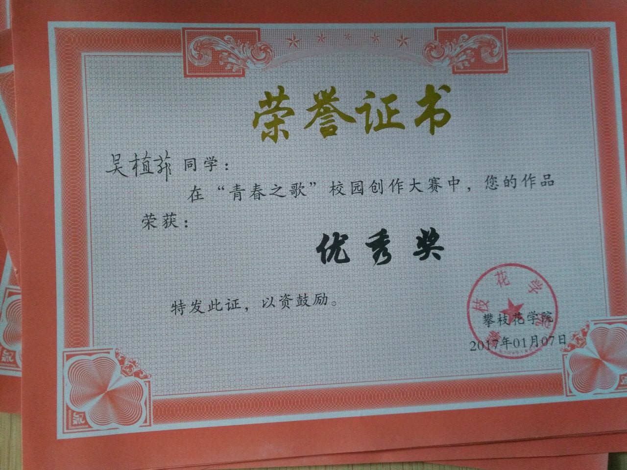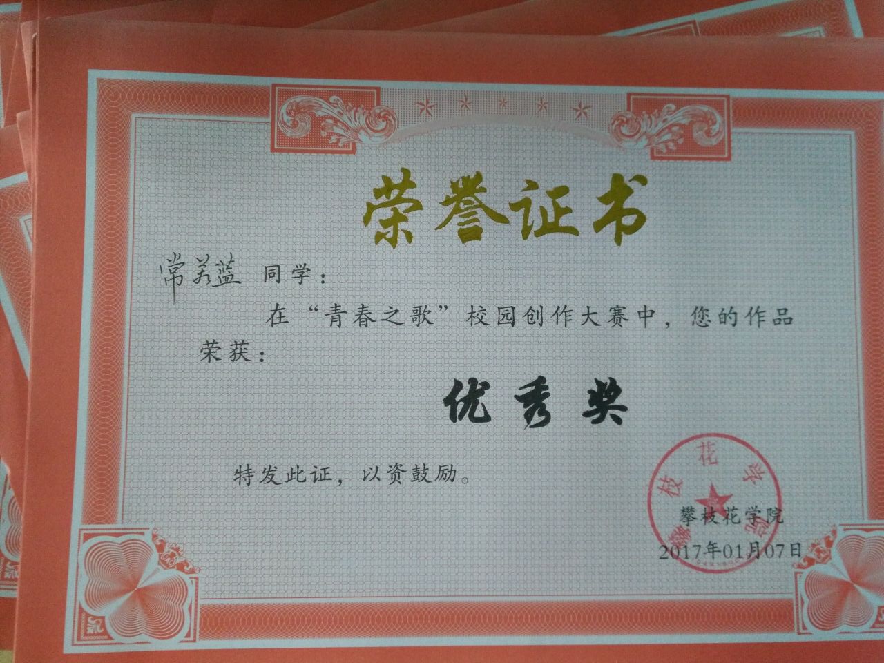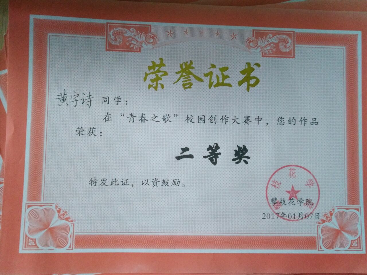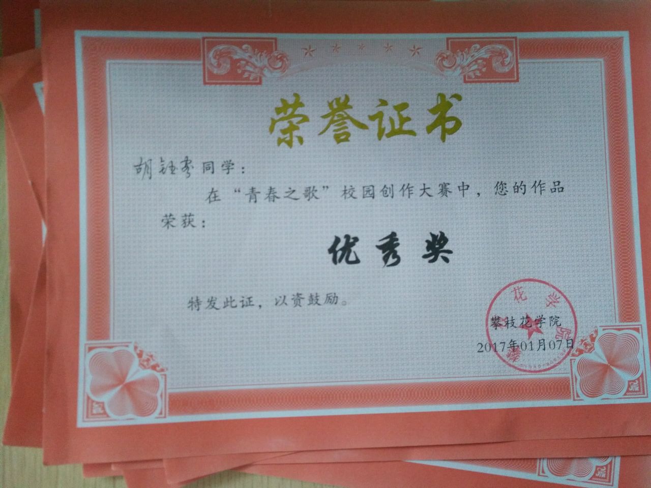 2016年“青春之歌”校园创作大赛获奖荣誉
