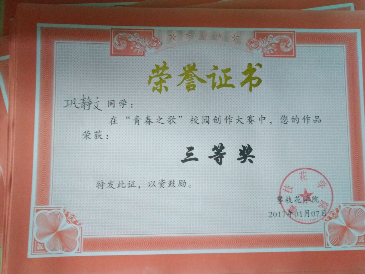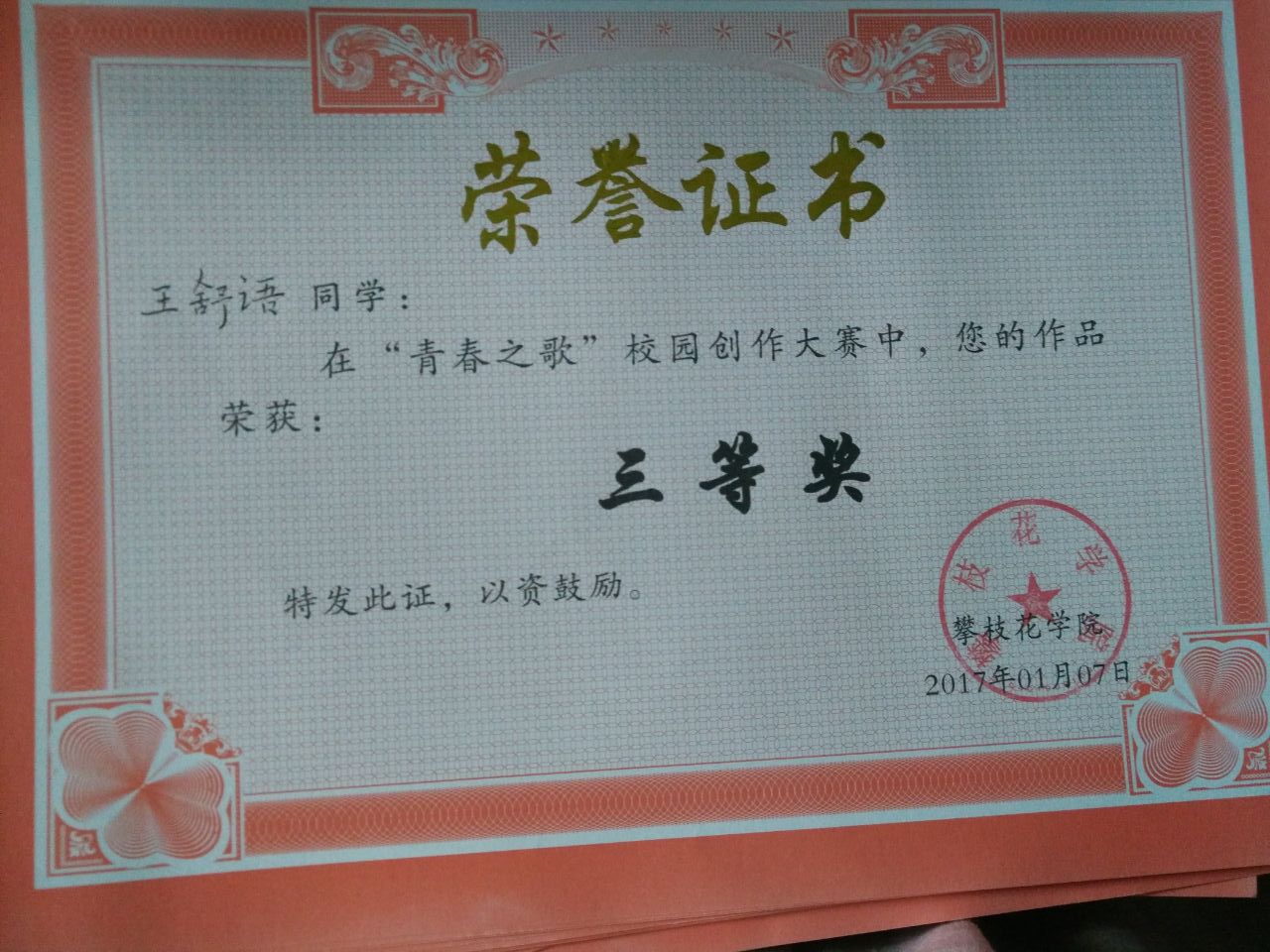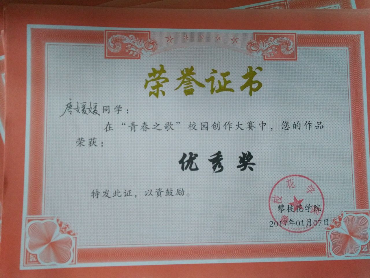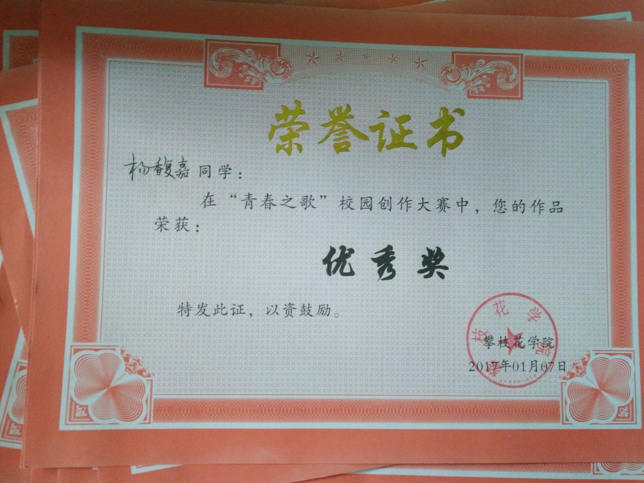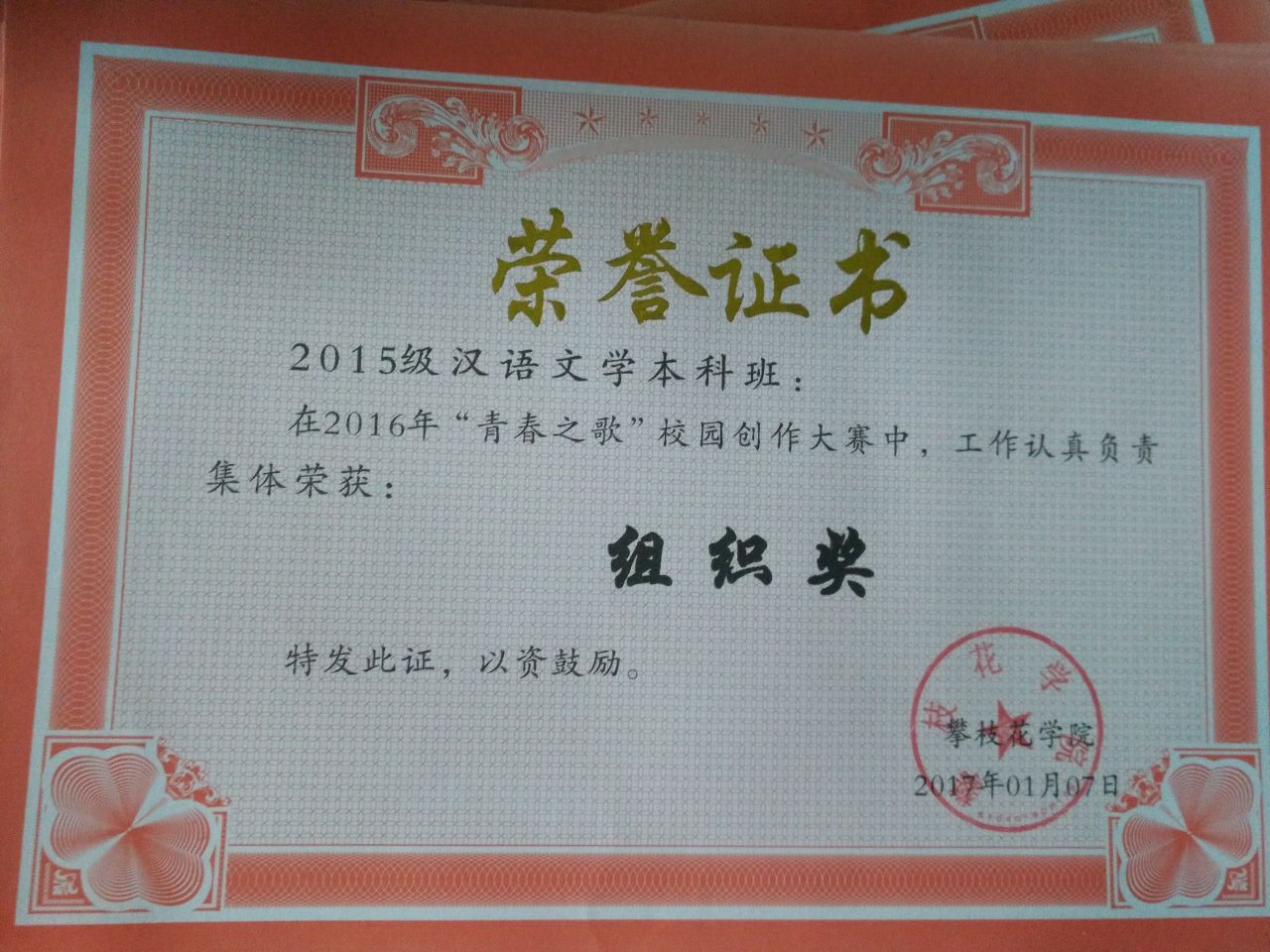2016年“青春之歌”校园创作大赛获奖荣誉
