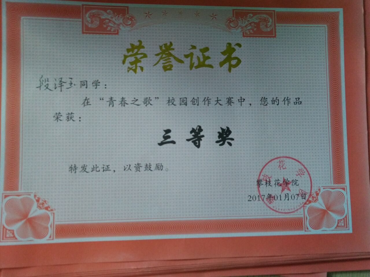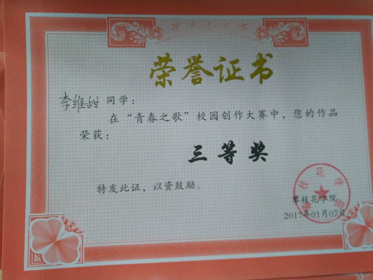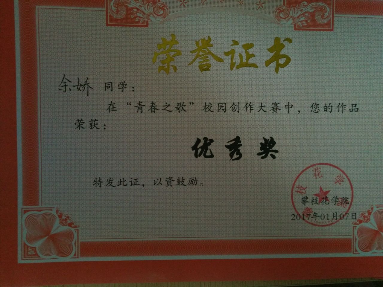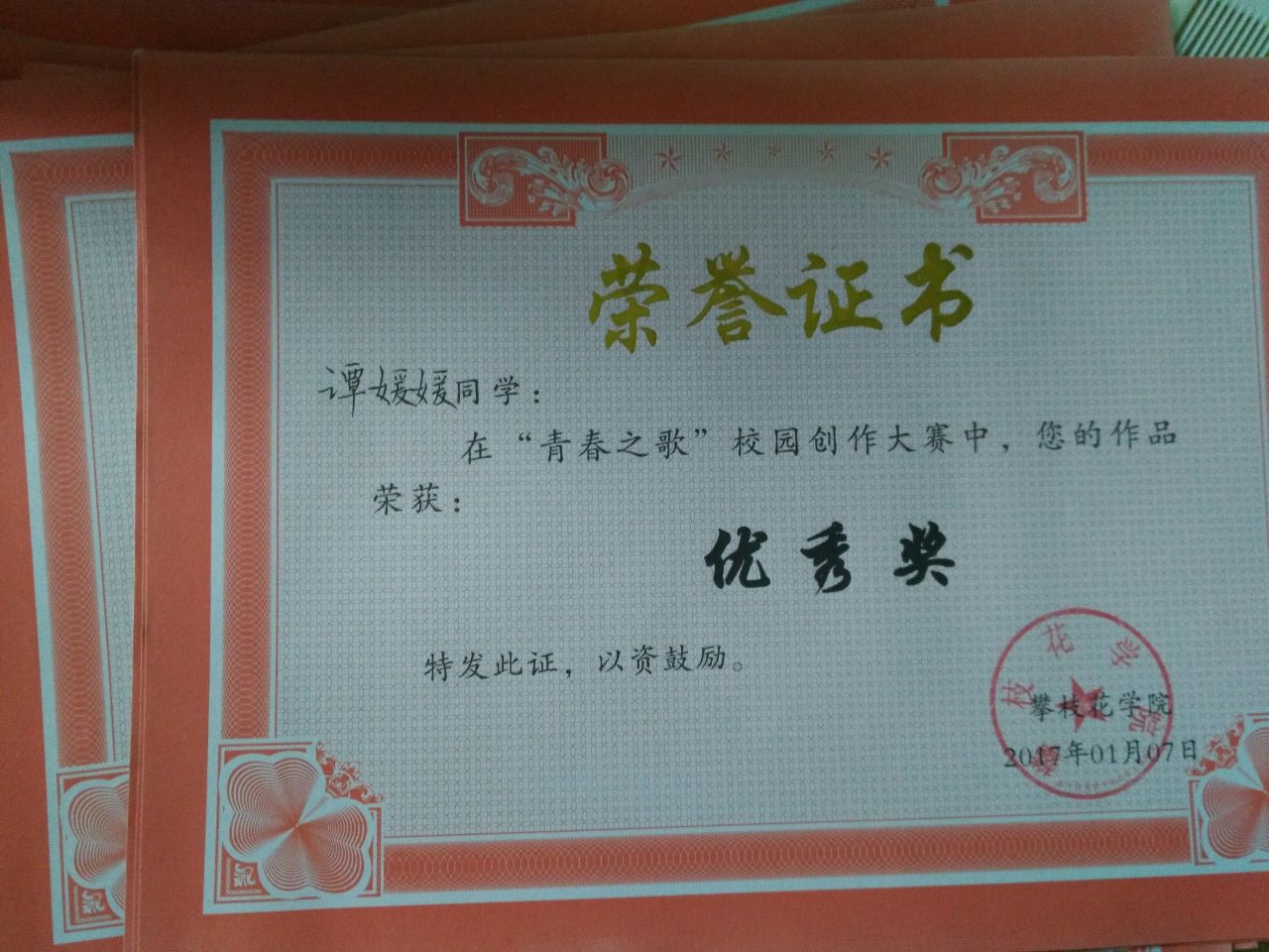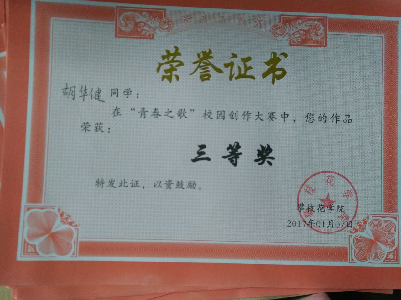2016年“青春之歌”校园创作大赛获奖荣誉