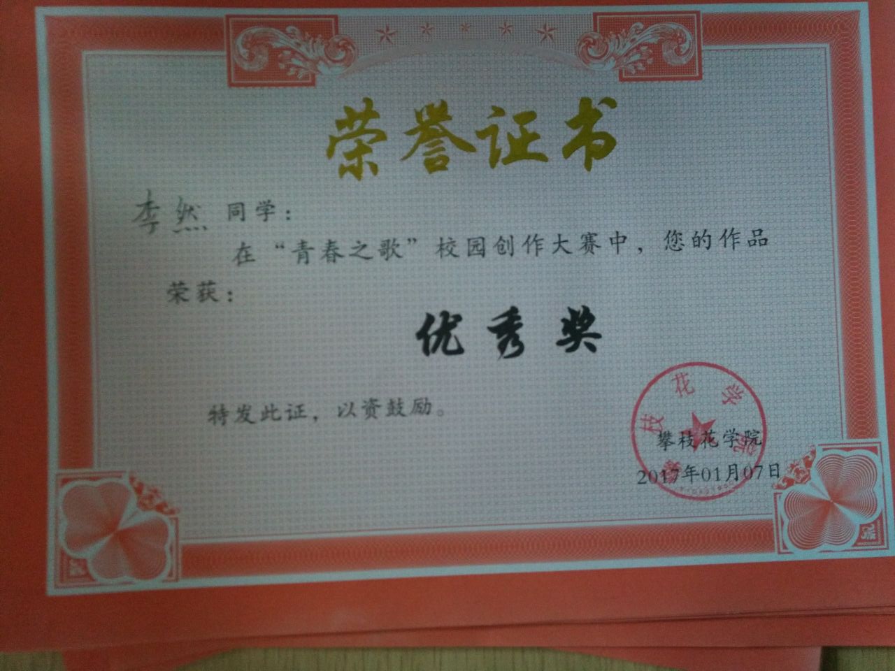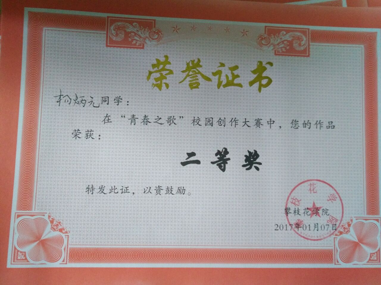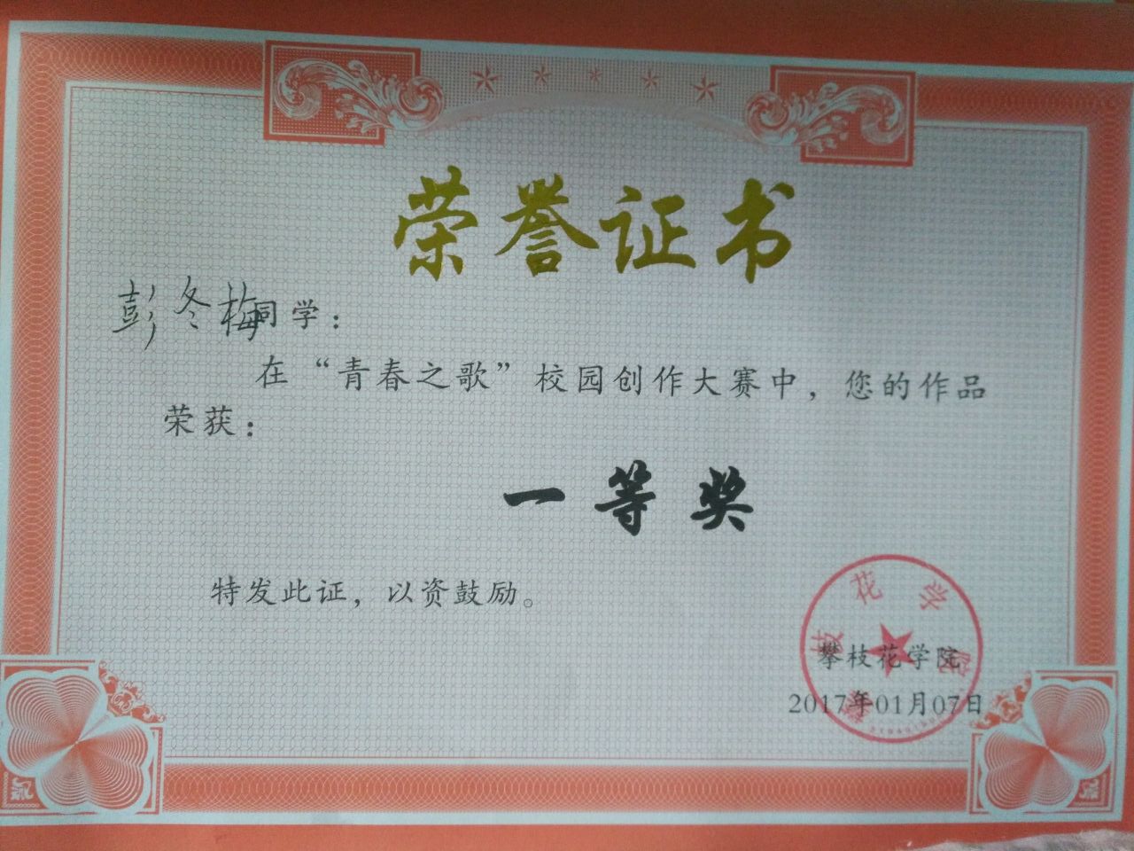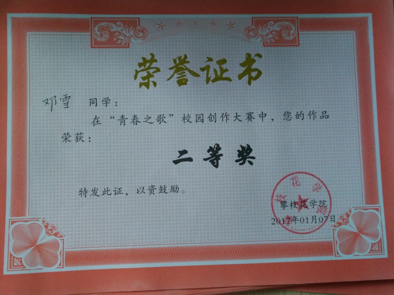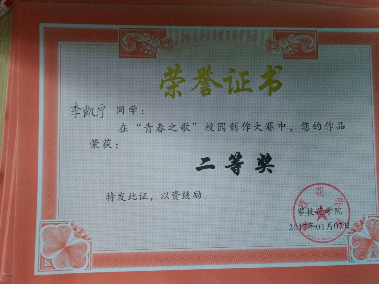 2016年“青春之歌”校园创作大赛获奖荣誉