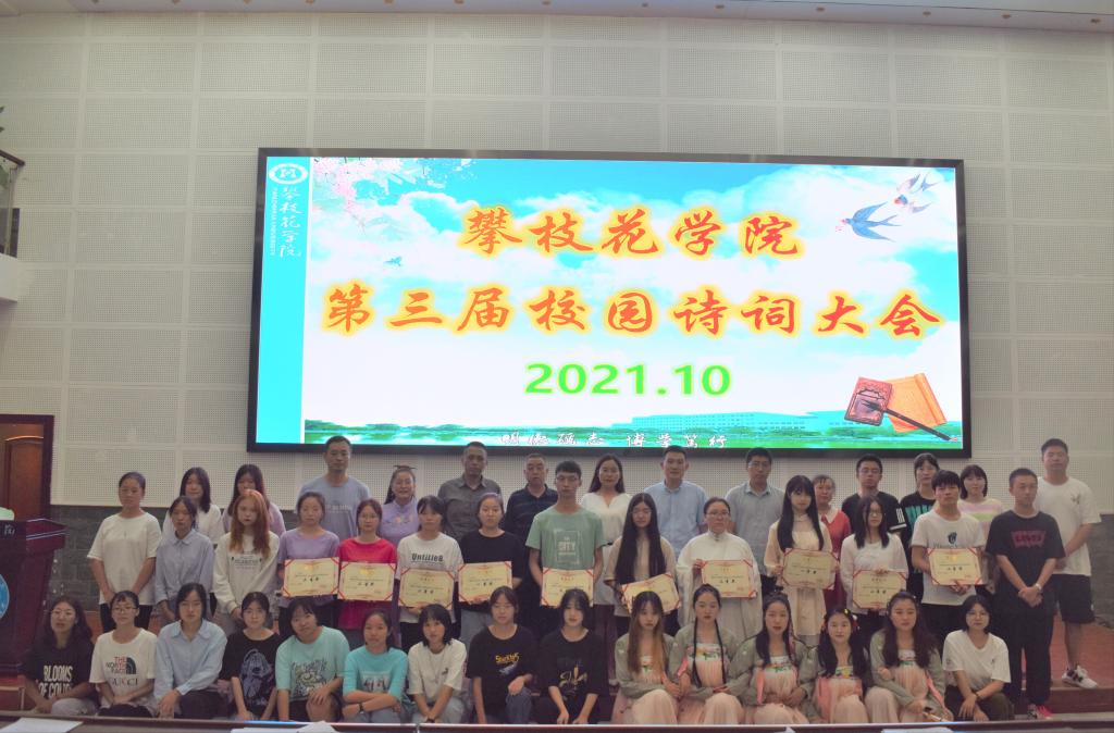 大会决赛题目形式多样、从多方面考查参赛人员的诗词知识,选手们在必答题、抢答题、风险题、飞花令四个环节中展开激烈角逐,展现了扎实的诗词功底。比赛期间,嘉宾老师们带来的诗词朗诵和同学们带来的优美舞蹈,在紧张的答题之余,更让现场感受了文学艺术之美。经过激烈角逐,参赛选手舒馨悦、吴渝梅获得本次大赛一等奖,彭杰、彭于洛、晏文浩获得二等奖,陈栖、杨珺慧、张慧、钟悦、郭之熠获得三等奖。