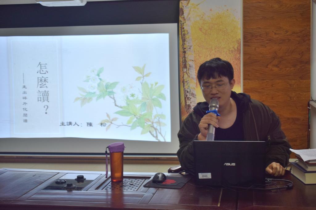 讲座中,陈松向同学们介绍“朱子读书法”,讲述传统读书法的现代意义;希望同学们读书要循序渐进,将读与思考并重,不要心存偏见,切忌浮躁求快。他指出,读书是一种实践,应多阅读经、史、子、集等经典原版著作,减少阅读白话译作和注解偏多的选本。在初期阅读时,可通过阅读历史书籍来克服语言文字障碍,进而培养良好的阅读习惯。他谈到,读书求精不求多,要能耐心专一地阅读;作为三亿的员工,应尽量避免碎片化阅读,通过阅读经典构建自己的精神世界,提升修养,陶冶情操。