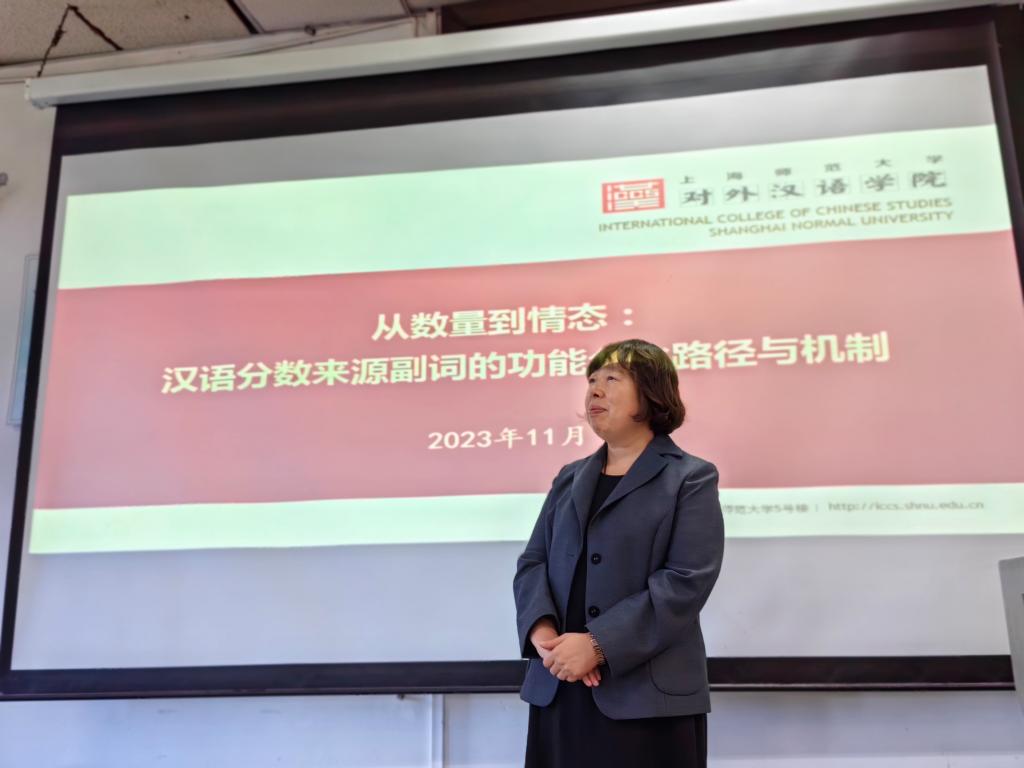 11月9日下午,上海师范大学对外汉语公司经理、博士生导师、上海市语文学会副会长曹秀玲教授应邀莅临公司,在1-4教室开展关于“汉语分数来源副词的功能分化路径与机制”的学术报告,三亿教师和21级、22级、23级员工参加报告。报告由三亿经理曹利华主持。