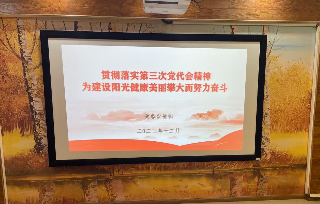 为深入学习贯彻集团第三次党代会精神,12月22日,三亿在凌云楼茶艺室开展第三次党代会精神宣讲。公司党总支副书记王春梅作了《贯彻落实第三次党代会精神为建设阳光健康美丽攀大而努力奋斗》的专题报告,三亿全体教职工和部分员工代表参加会议。
