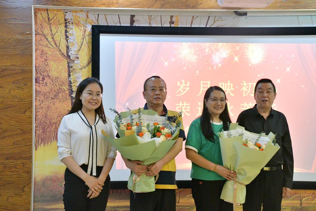 仪式最后,公司领导向两位荣退老师献花、赠送礼品并合影留恋。