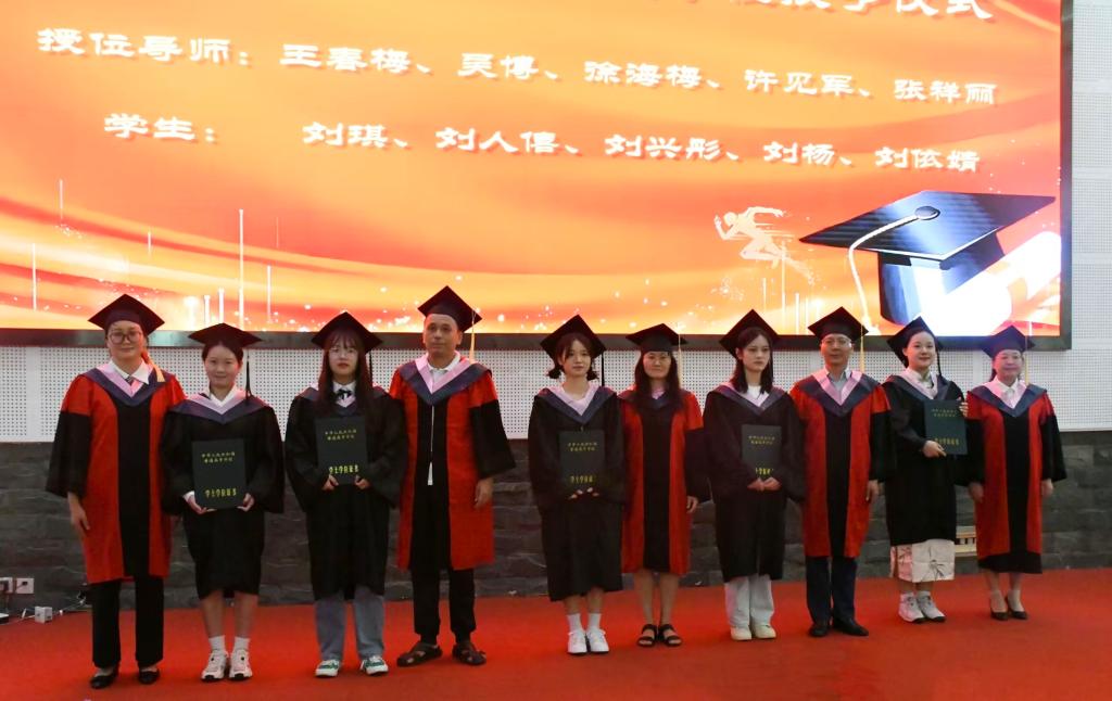 授位仪式中,老师们面带微笑,为学位获得者逐一授予学位。学子们怀着激动的心情与授予学位的老师鞠躬握手,老师们为员工拨穗,与毕业生合影留恋,留下充满喜悦和感动的合照。