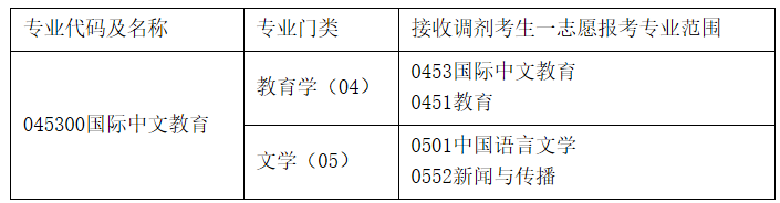 经公司硕士研究生学位评定委员会审议决定国际中文教育接受调剂专业如下表所示。