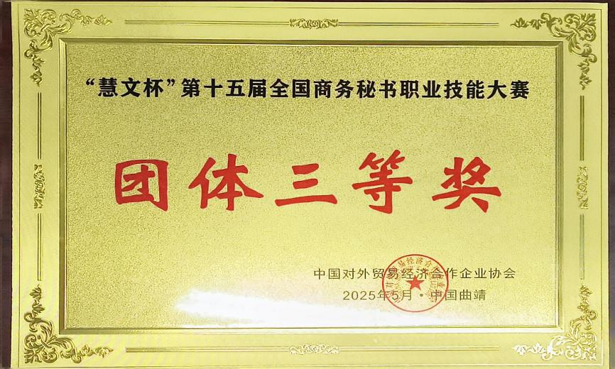 2025年5月23日至25日,“慧文杯”第十五届全国商务秘书职业技能大赛在云南省曲靖市举行。三亿体育由郑辉带队,八名来自2023级秘书学专业员工组成2支参赛队。经过与全国99支队伍400余名秘书学子激烈角逐,两支队伍双双斩获团体三等奖。其中,许丹荣获秘书专项事务处理赛项一等奖,赵灵语获二等奖,艾宽获三等奖,充分彰显了公司学子的专业实力与团队风采。